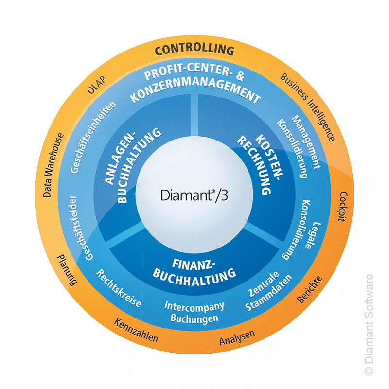 Wir sind Premium-Partner von Diamant Software, die mit ihrem Produkt Diamant/3, einer der führenden Anbieter von integrierten Lösungen für Finanzbuchhaltung, Kostenrechnung, Anlagenbuchhaltung, Konzernmanagement und Controlling im deutschen Markt mit ÜBER 4.000 INSTALLATIONEN ist. Dabei stehen wir Ihnen mit unserem umfassenden Know-how bei der AUSWAHL, KONZEPTION, INSTALLATION, MIGRATION UND SCHULUNG zur Seite.